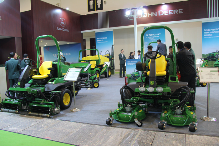 綠友展出了約翰迪爾系列剪草機、球場工作車等設備,亨特灌溉設備,GREENMAN四座系列、兩座系列球車,GEENMAN泵站以及打藥機、壓輥機等自產設備。