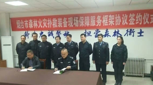 2017年2月28日,煙臺(tái)市森林消防技能大比武暨地空配合滅火演練活動(dòng)在萊山區(qū)界牌村港城東大街北側(cè)空地舉行。 活動(dòng)設(shè)新型森林消防裝備展示、授旗儀式、地空配合滅火演練、比武競(jìng)賽項(xiàng)目(負(fù)重越野、水泵接力與撤收)4項(xiàng)內(nèi)容。省森林防火指揮部辦公室副主任、省森林公安局局長(zhǎng)劉得,市政府副秘書(shū)長(zhǎng)董銳,萊山區(qū)區(qū)長(zhǎng)孫玉榮,交通部北海第一救助飛行隊(duì)黨委書(shū)記姜力軍,市林業(yè)局局長(zhǎng)孫樹(shù)福等出席活動(dòng)現(xiàn)場(chǎng)。比武包括各區(qū)縣,共15個(gè)隊(duì)伍,參加人數(shù)300人左右,山東綠友森防公司應(yīng)邀參加了森林防火裝備現(xiàn)場(chǎng)展示,并在當(dāng)日下午3點(diǎn)應(yīng)邀參加了煙臺(tái)市森林公安局正式簽訂成為森林火災(zāi)裝備現(xiàn)場(chǎng)保障服務(wù)單位。