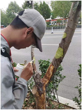 筆者上周在河南等地走訪各大公園、主干道路時發現,櫻花、海棠等中等喬木的樹木葉片開始發黃枯萎,葉片掉落,很多養護人員誤認為是葉片病害,葉噴百菌清等殺菌農藥,卻不見起色;待到后期主干、主枝出現潰瘍、腐爛、干腐,甚至爆皮,最終導致枝干脫水死亡。