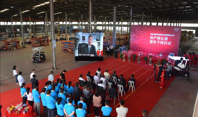 5月5日上午,在一串喜慶的鞭炮聲中,綠友集團(tuán)新能源車輛有限公司投產(chǎn)典禮暨首車下線儀式正式開(kāi)始。