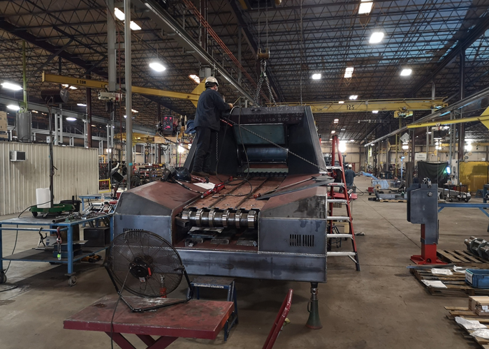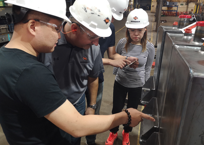 在木霸克國際市場總經理Curt 先生的帶領下,綠友一行進入木霸克的生產車間,了解每一臺高品質產品是如何生產出來。從生產計劃,金屬加工,材料分選,品質控制,現場管理,配件存儲,人員培訓,木霸克工廠毫無保留展示每一處生產細節,而依靠這些細節的管控才能造就木霸克的品質和市場認可。參觀期間,Curt特意強調了材料分選是木霸克設備和其他品牌產品的重要區別,木霸克針對每一部位應用和受力不用,在材料選擇都會進行區分,例如進料口下方的金屬板面由于需要經受長時間撞擊,這塊板面的選擇使用和美國坦克裝甲相同材料,并以不同顏色區分開。當消費者購買設備時,面對不同品牌產品都是光鮮亮麗,而隱藏在漆層下面的細節決定他們之間的區別,發現這些細節的不同則需要深入生產車間,而這也是木霸克最希望客戶參觀他們生產的原因。