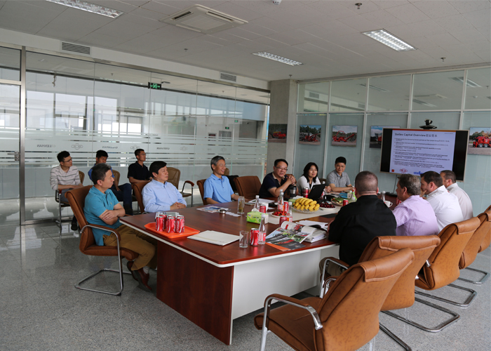 5月8-9日的綠友園,碧空如洗,清風獵獵。綠友集團迎來了美國木霸克公司首席執行官戴夫?赫爾、高級副總裁約翰?福特、工業設備國際部經理柯爾特?麥克穆倫、工業設備銷售總監邁克爾?斯坦頓一行四人的到訪。