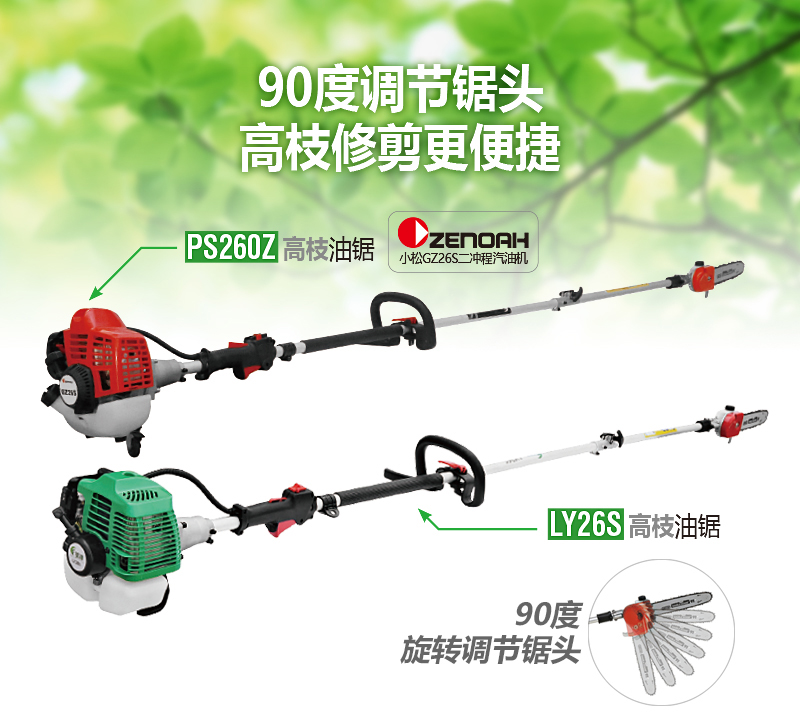 美神高枝油鋸,90度可旋轉(zhuǎn)刀頭,奧里根導(dǎo)板和鏈條;整機(jī)長(zhǎng)度3米,適用于高空樹(shù)枝的修伐。