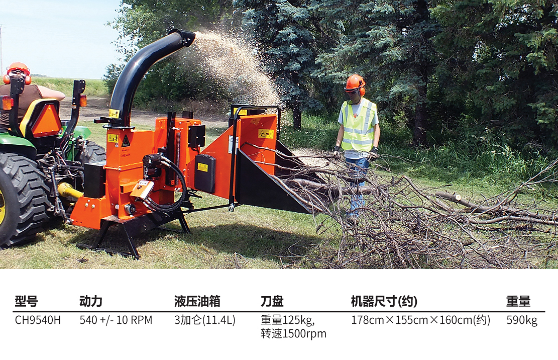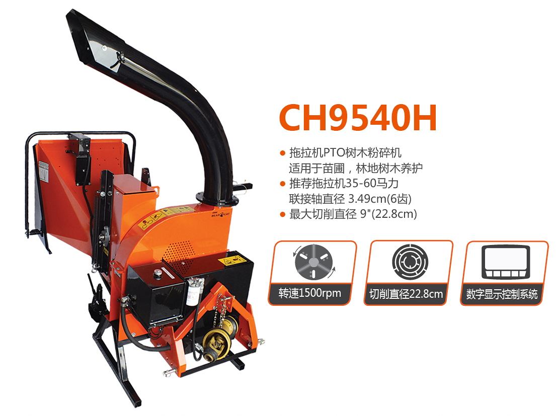 老熊(BEARCAT)品牌樹枝粉碎機(jī),采用PTO驅(qū)動,適合苗圃等場所使用。推薦拖拉機(jī)35-60馬力,聯(lián)接軸直徑3.49cm(6齒);最大切削直徑9"(23cm)。