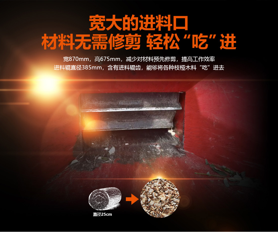 25cm全自動液壓進料粉碎機,選用49馬力環保柴油發動機。