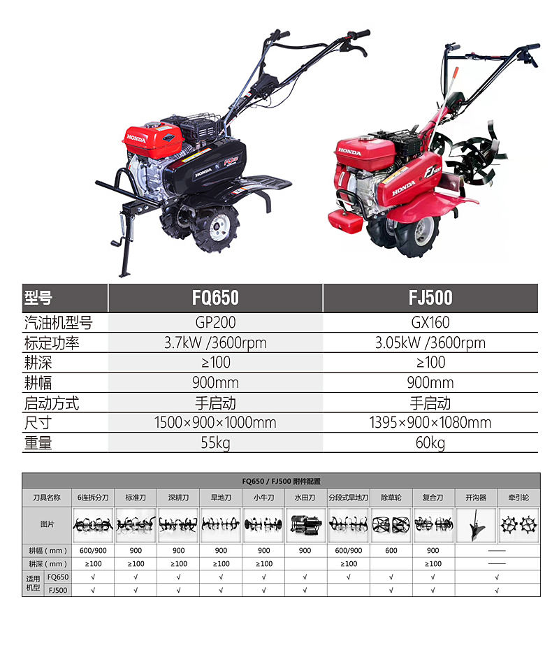 根據土壤硬度和耕作需要可選擇標準刀、深耕刀、除草輪、復合刀、開溝器、旱地刀等不同刀具。